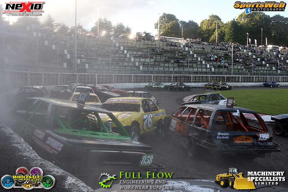 On the programme were Ministocks, Streetstocks, Production Saloons and the always popular Superstocks with the latter running open races and a series of inter-club teams races featuring the Rebels blue and red teams as well as one called the Bounty Hunters which was almost entirely made up of the Hunter family who have for years been synonymous with the Rotorua Speedway Club for many years.